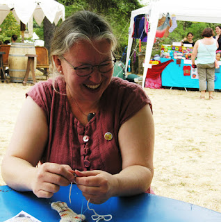 Nos voisines les fileuses (dont Annick, ma nouvelle copine “très méchante” ! 😉 ) et un métier à tisser XXL super ingénieux .. et fait maison. Ainsi que cette demoiselle et son fil “abeille” incroyable sur un fuseau turc..!