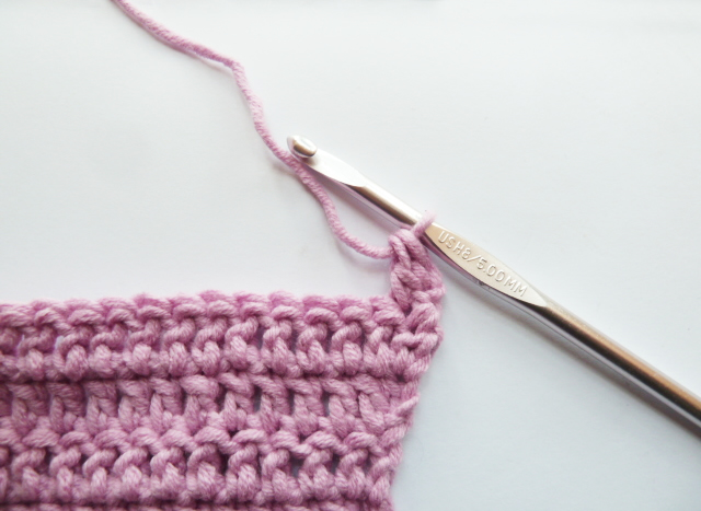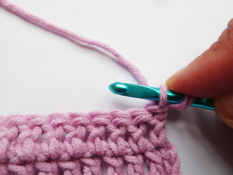 En fin de rang, pensez bien à crocheter la dernière Bride dans le haut de ces mailles serrées empilées.