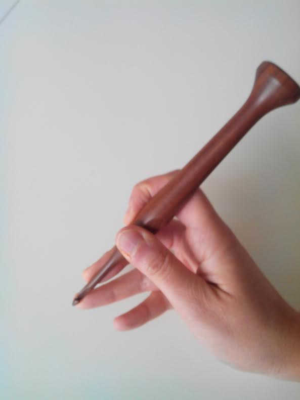 De plus, si ça tient en main en le tenant comme un couteau, les fibres (laine ou coton) ne glissent pas.