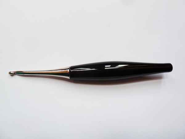 – Il est magnifique, et crochète presque sans accroc (je suis très difficile). Crocheter avec est pour moi une petite parenthèse de bonheur… C’est vraiment un très bel objet.