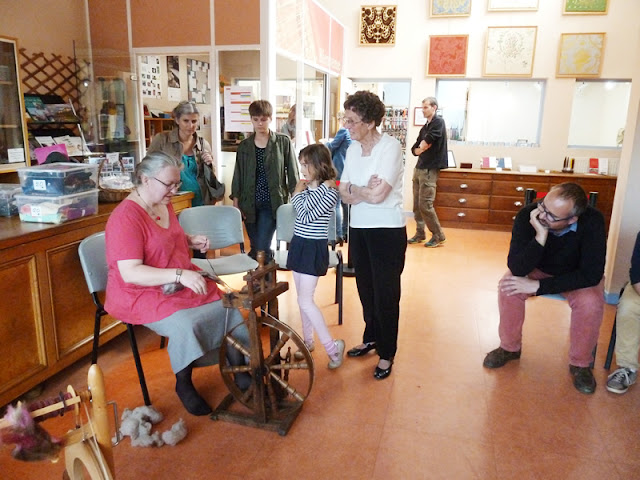 Le week-end dernier, nous étions invitées avec les copines Greblogueuses à faire une démonstration de filage au Musée du tisserand dauphinois, à la Batie Montgascon, à 2 pas des Abrets.